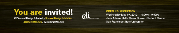 Collateral design for the Annual Design & Industry Student Design Exhibition at San Francisco State University.