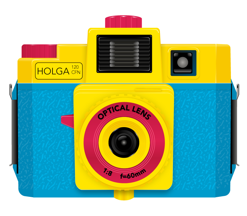 Digital illustration form of the original Holga 120 CFN Plastic Medium Format Camera.